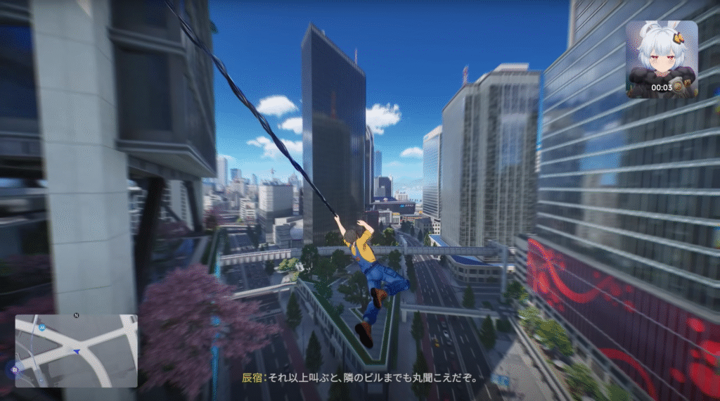 『無限大ANANTA』は、高自由度の都市型オープンワールドRPGです。アニメ調GTAみたいに言われる本作ですが、移動等のアクションはスパイダーマン味を出していたり、ウォッチドックスのような街中のハッキング演出等々…細かい部分を見だすと色々なゲームの要素を感じられます。